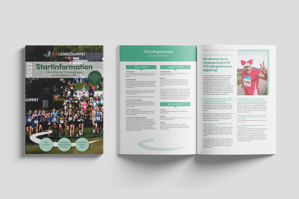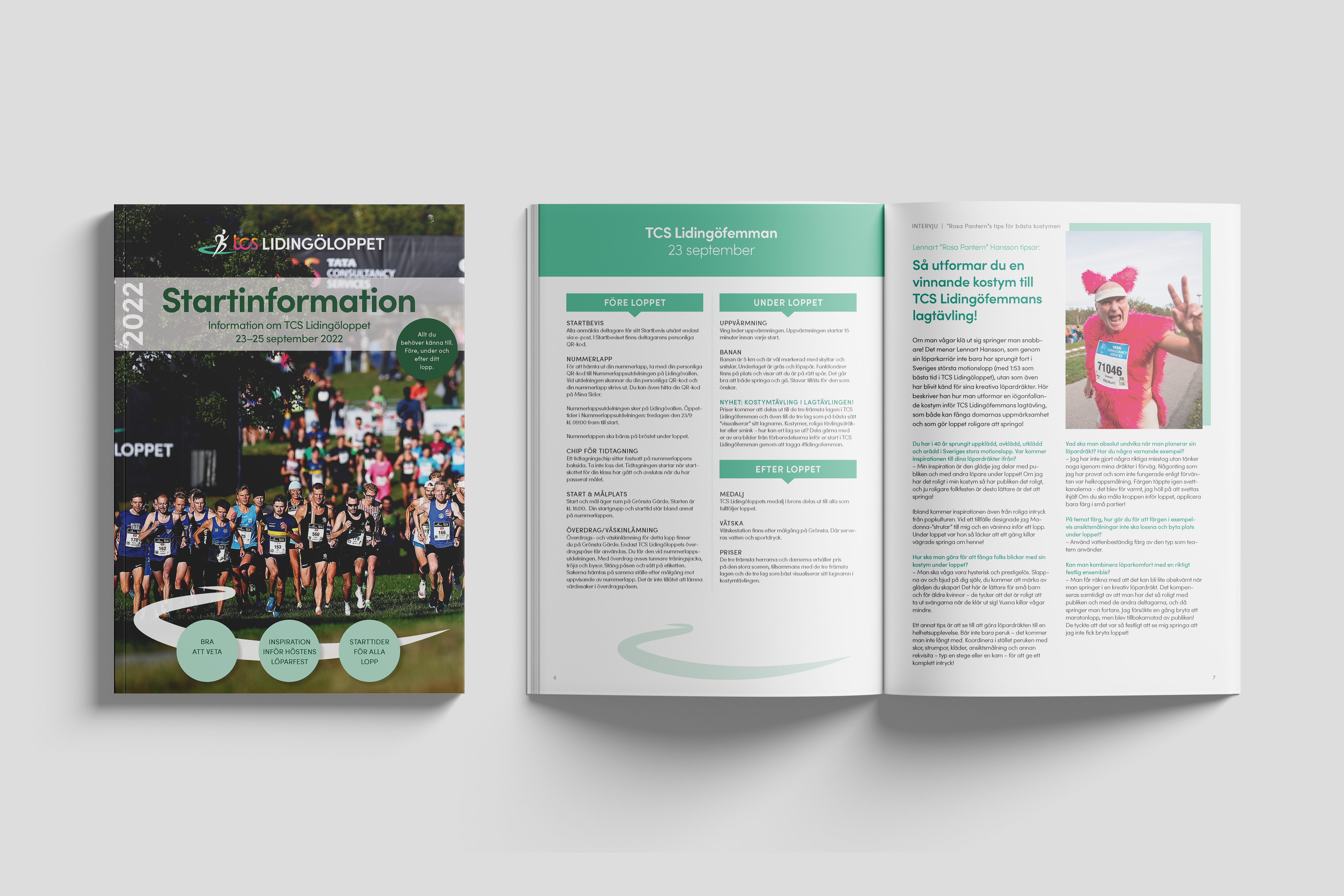 TCS Lidingöloppets starttidning 2022 skrevs av en kollega och layoutades av mig. Den skickades sen ut via e-post till alla som anmält sig till årets lopp innan eventet startade.